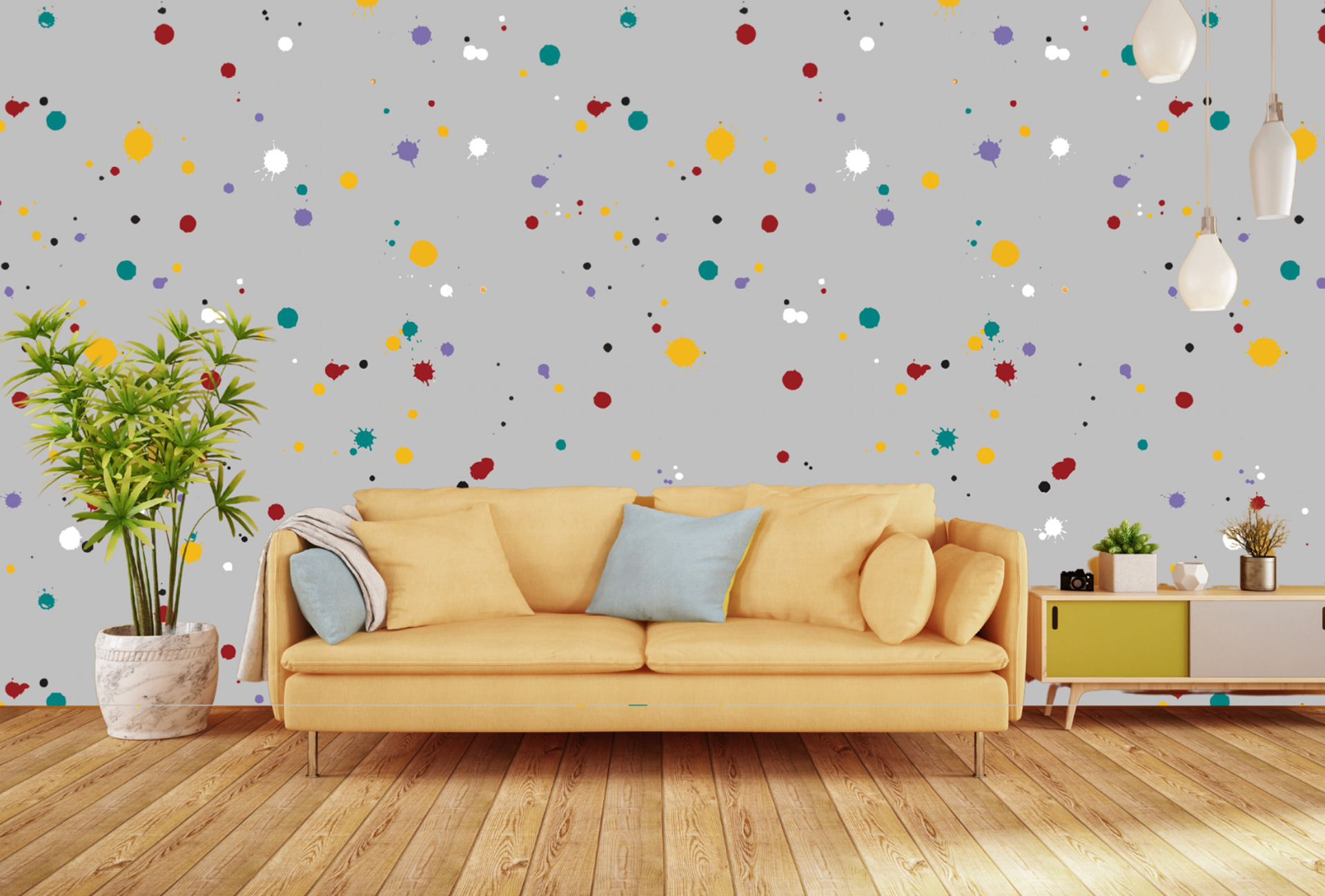 A carefully curated blend of geometric forms, vibrant hues, and rich textures creates a dynamic yet cohesive design. This seamless wallpaper is crafted to elevate spaces with a harmonious balance of visual appeal and functional elegance.